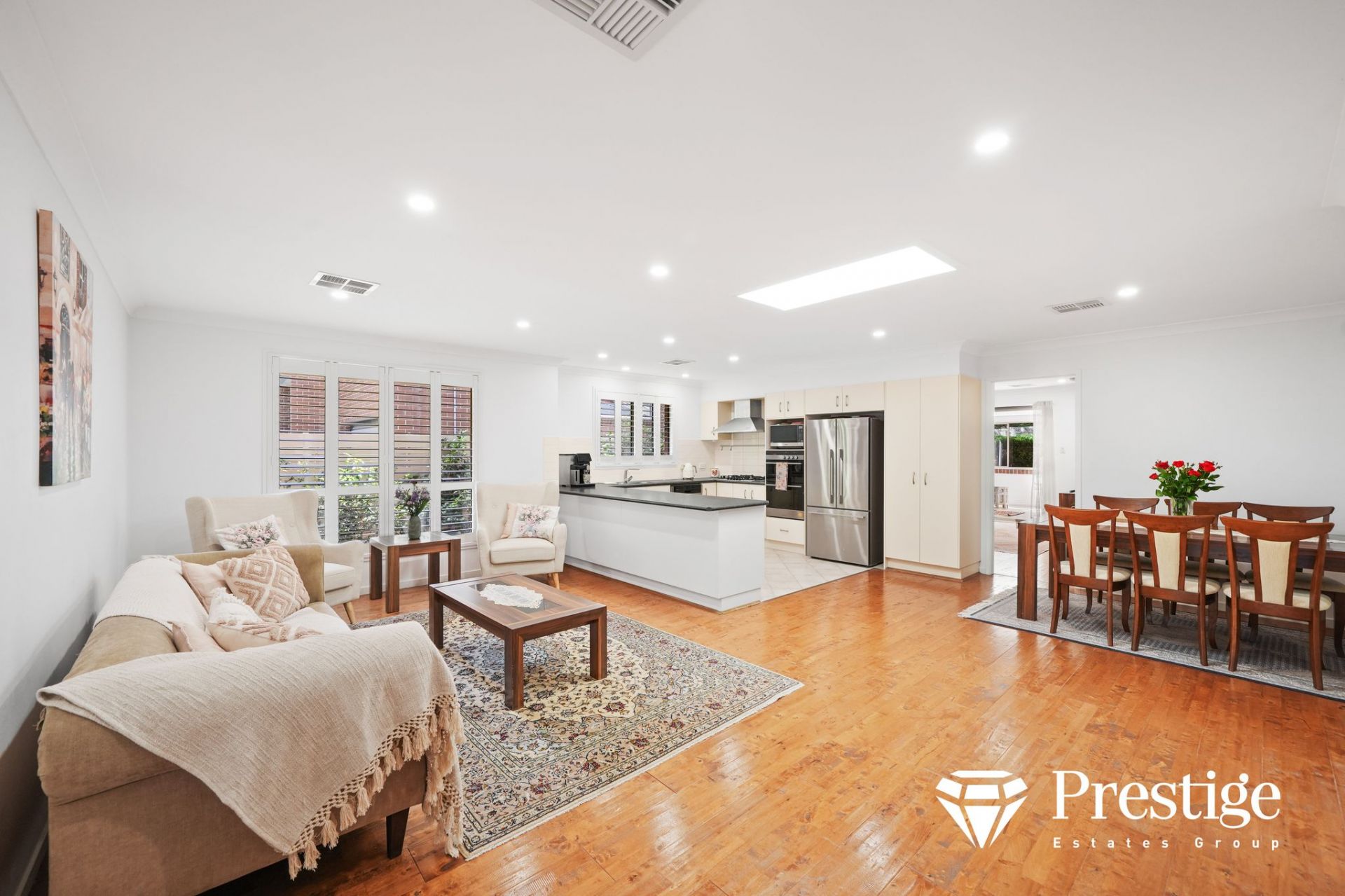 Open plan living and dining areas with plenty of natural light